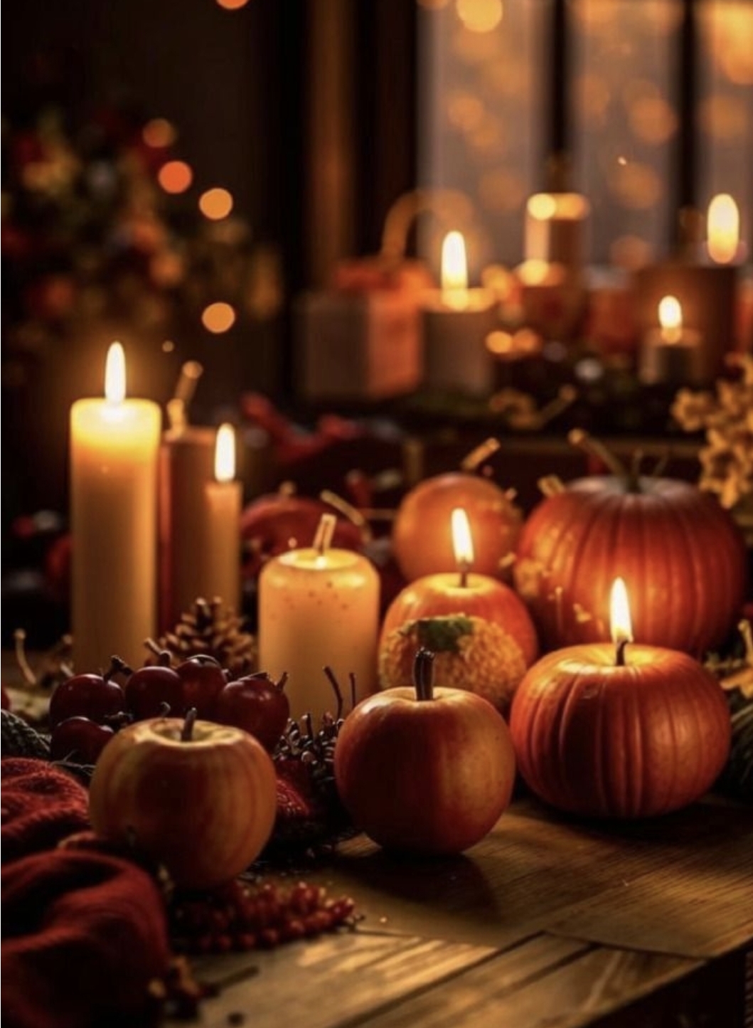 Dans les traditions païennes et chamaniques, la roue de l'année est le nom du cycle annuel des saisons, comportant 8 fêtes nommées Sabbats, parmi lesquelles nous retrouvons Samain. Son nom lui vient du gaélique et pourrait être traduit par "fin de l'été". Autrefois, on laissait le feu des foyers s'éteindre et le druide était chargé de rallumer le feu sacré. Cette fête est donc rattaché à l'élément feu, dans toute sa dimension symbolique et spirituelle.